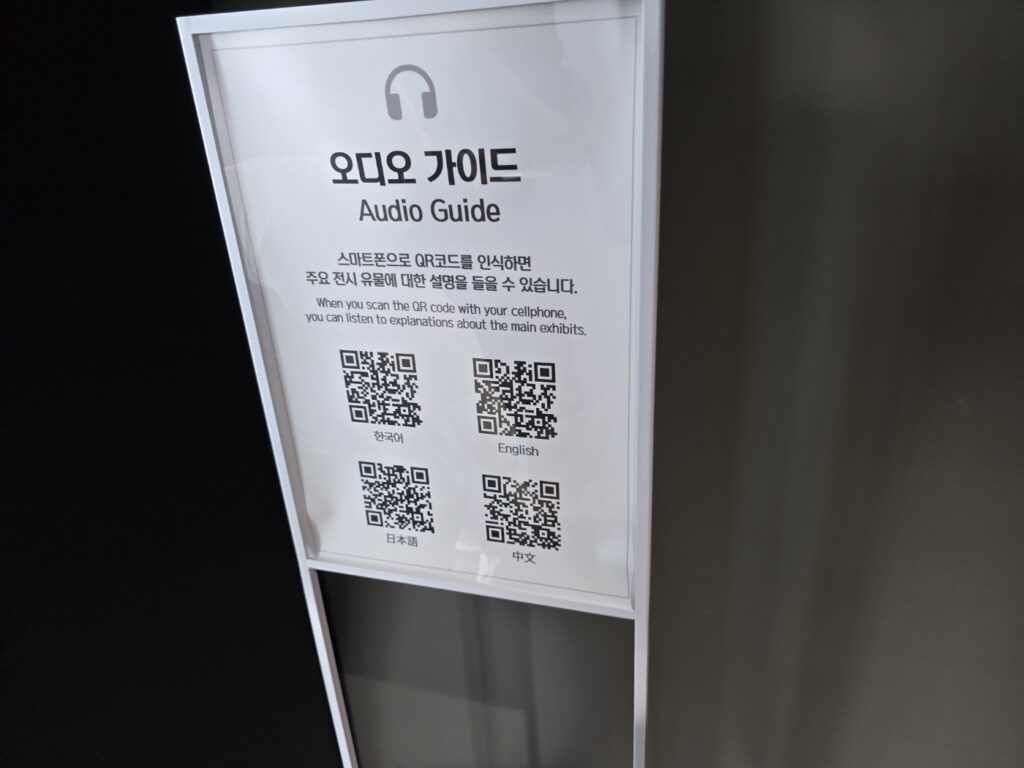 The museum provides audio guides in four languages: Korean, English, Japanese, and Chinese.