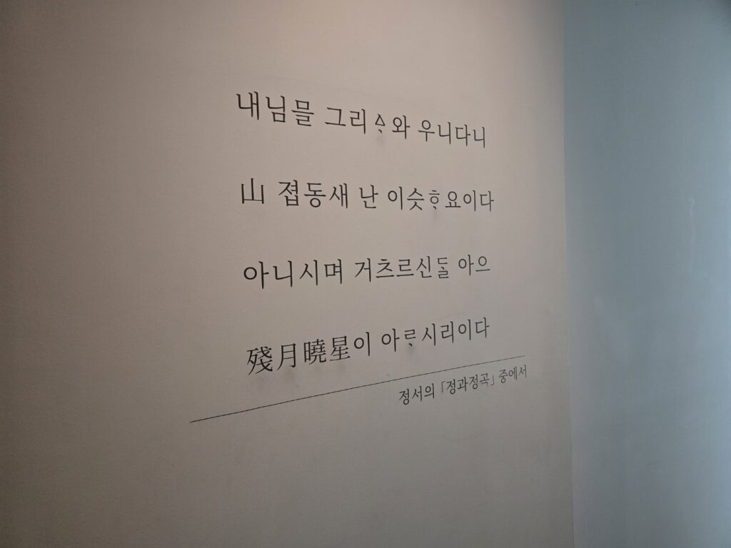 In one corner of the exhibition, there are poems written in Middle Korean. In Korea, works of this nature are sometimes studied at the high school level.