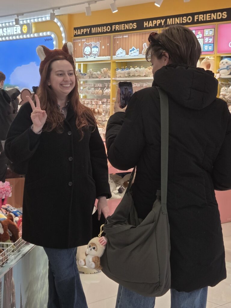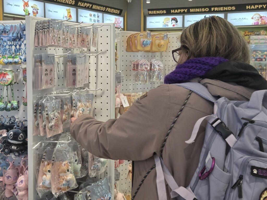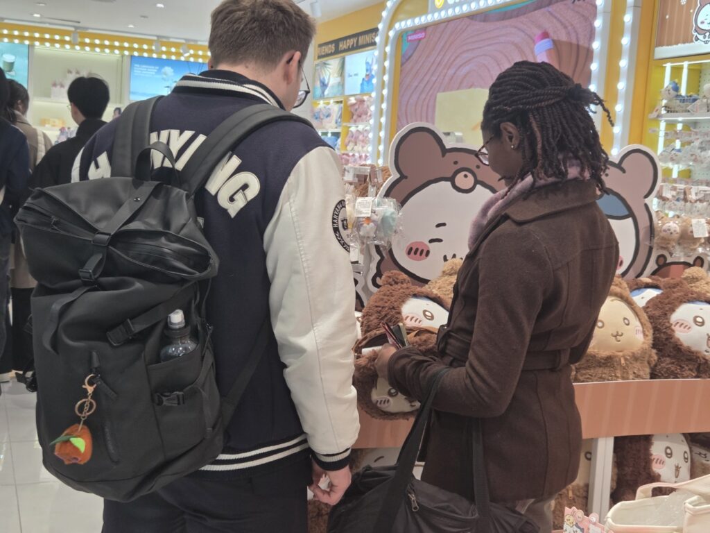 At MINISO, we could see many cute character goods and dolls. The students had a great time looking at all the fun and adorable items.