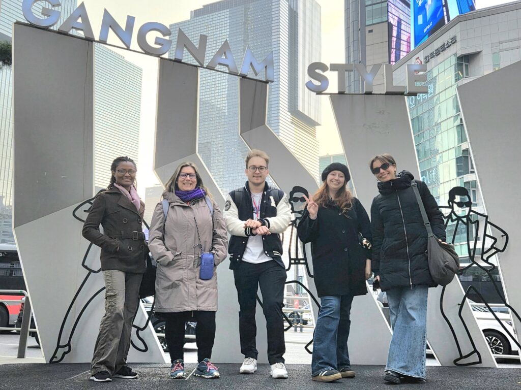 Finally, we visited the Gangnam Style photo zone and took a group photo together! 📸