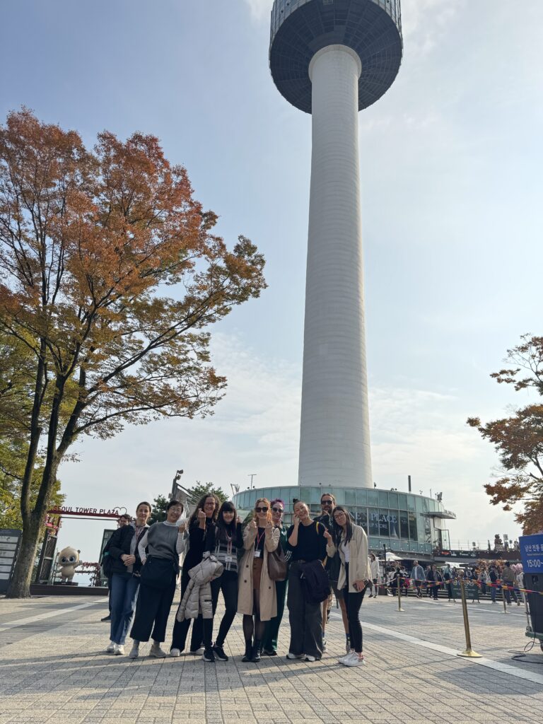 N서울타워 앞에서 단체 사진을 찍었어요.