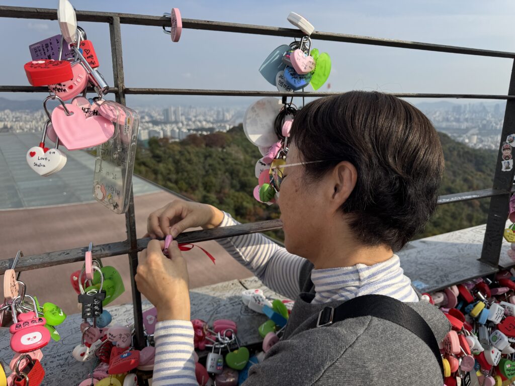 We enjoyed the colorful autumn scenery of Namsan and spent some time hanging love locks while looking at the view of Seoul.