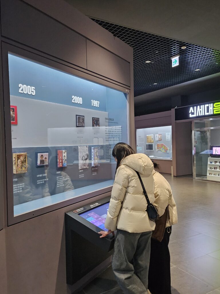 K-POP을 좋아하는 학생들은 한국 가요 역사의 흐름을 살펴볼 수 있는 전시를 관람했어요. 이곳에서는 한국에서 K-POP이 어떻게 발전해왔는지, 또 지난 시대에는 어떤 가수들이 큰 인기를 얻었는지를 영상과 음악을 통해 알아볼 수 있었어요.