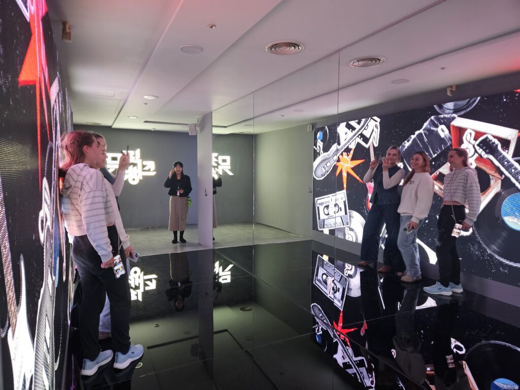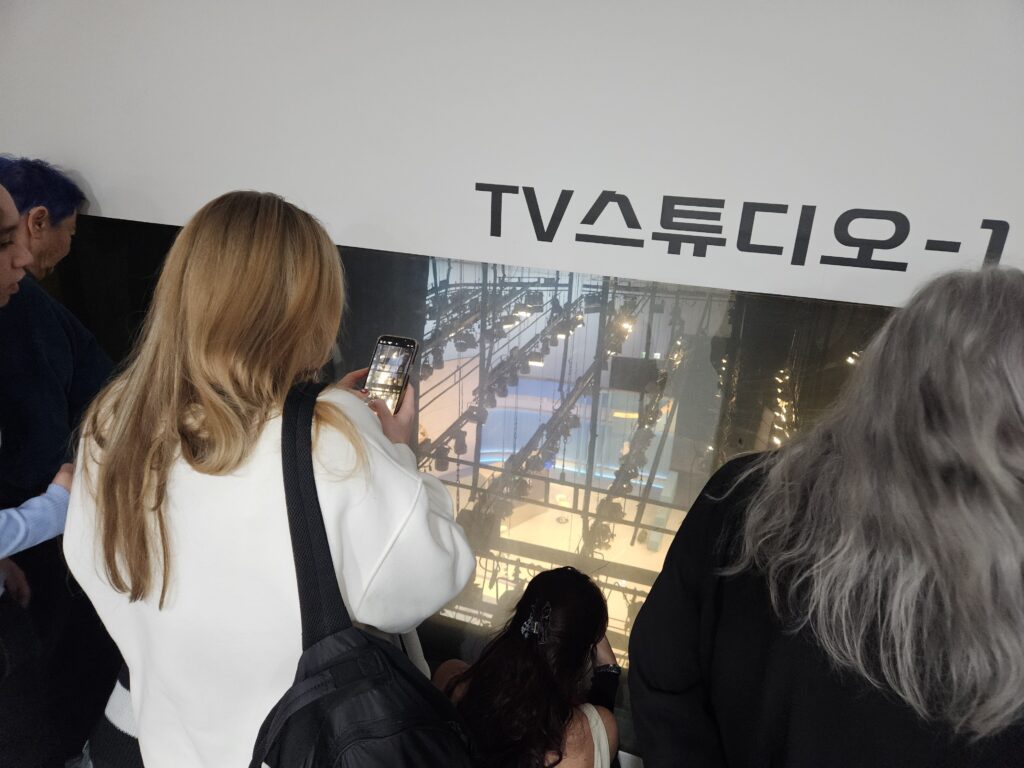 Before starting the next activity, we took mirror shots in front of the actual stage background used for Music Bank. Under the space where the voice acting experience takes place, we were also able to watch a documentary being filmed live.